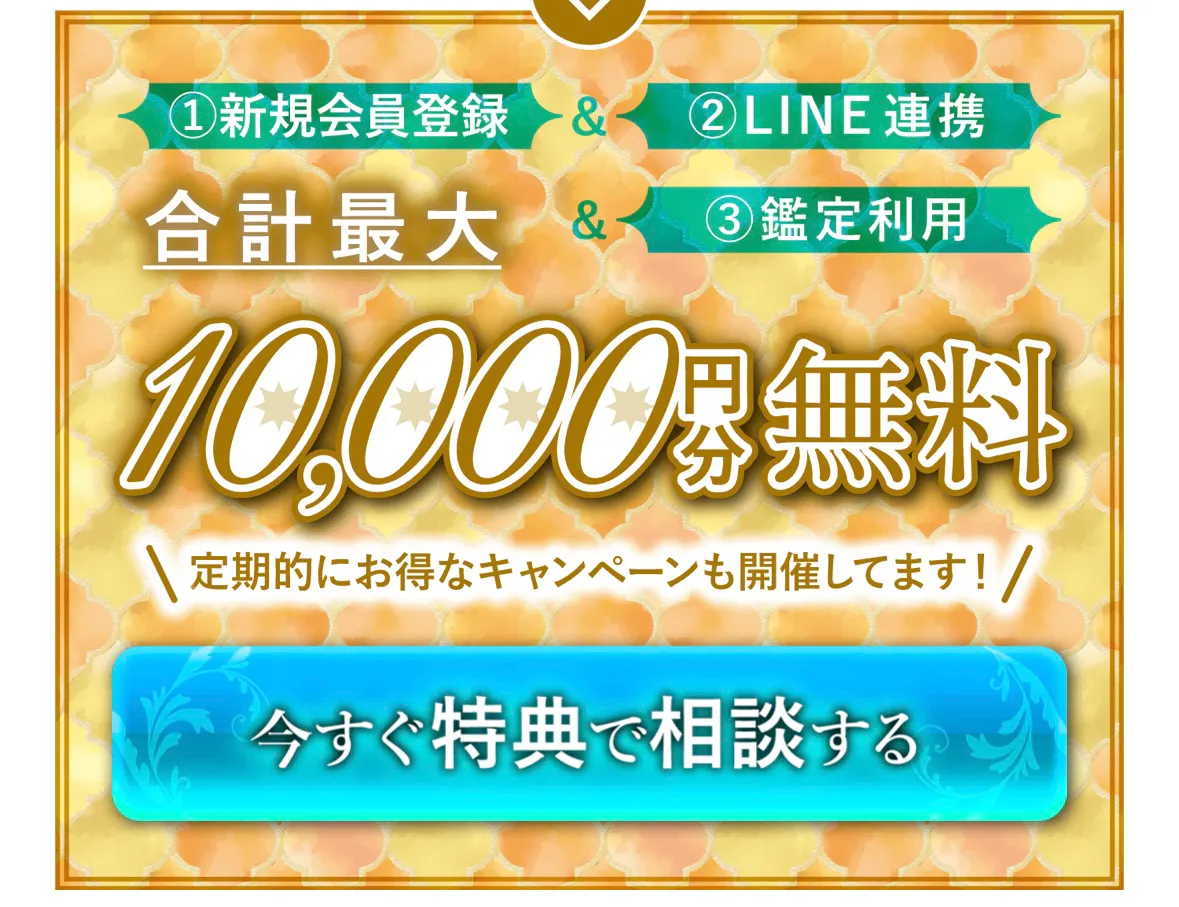 さらに今なら、初回限定で「10分無料鑑定」が受けられるキャンペーンを実施中!対象の先生を選ぶだけで自動適用されるため、面倒な手続きは不要です。費用が心配な方でも、この特典を使えば、的中率や自分との相性、鑑定スタイルが合うかどうかをリスクなしでじっくりと確かめることができます。