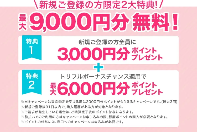 まずは新規登録するだけで3,000円分のポイントをプレゼントされます。