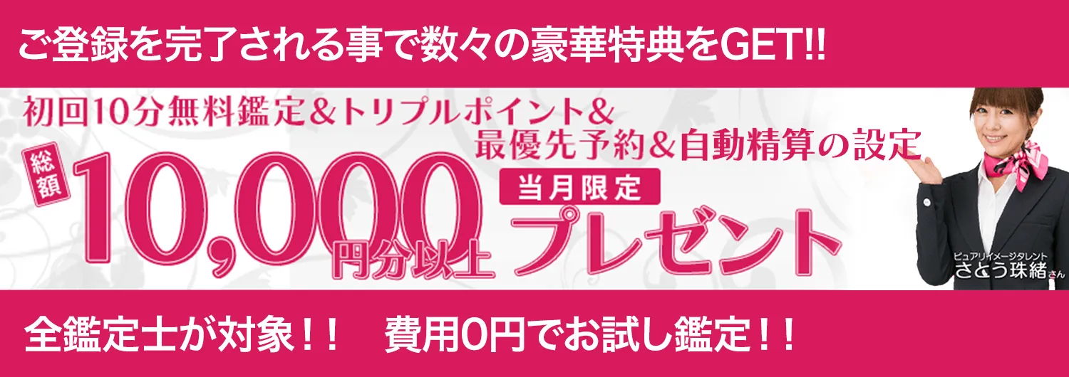 さらに、現在ピュアリでは「初回10分無料鑑定」の特別な特典が用意されています。