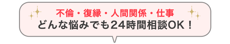| 得意相談 | 復縁・不倫・片思い | 人間関係・恋愛・転職 | 人間関係・恋愛・転職 |